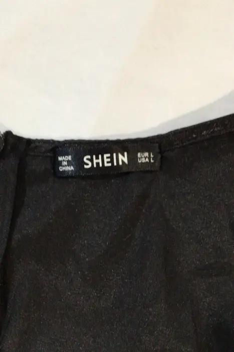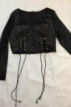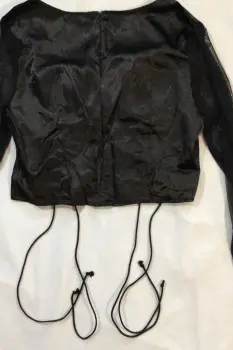 Blusa tipo top con agujetas negra, la tela es tipo razo y en los brazos transparente, no estira.