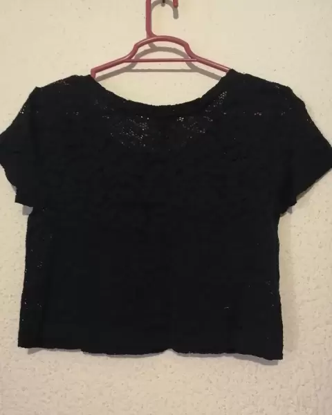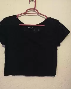 Crop top negro con encaje. Esta en muy buen estado no tiene detalles queda cualquier oufit, es muy fresca, ligera y cómoda