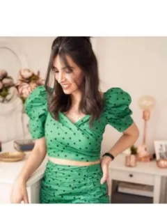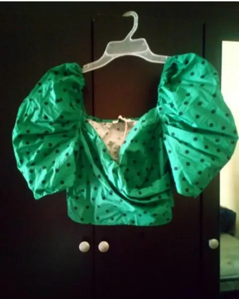 Hermoso crop top verde con puntitos manga abullonada talla m en perfecto estado solo una puesta esta como nuevo