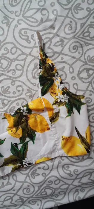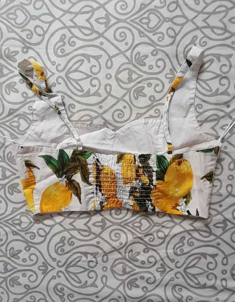 Hermoso croptop con estampado de limones, no tiene cierre, tiene elástico en la parte de atrás, esta en perfecto estado.