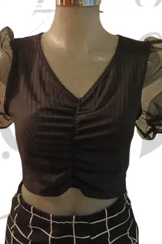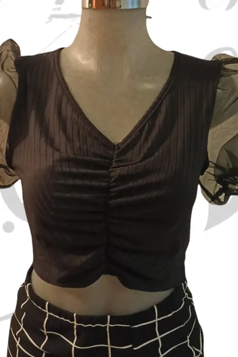 Hermoso croptop con drapeado enfrente y mangas globo transparente