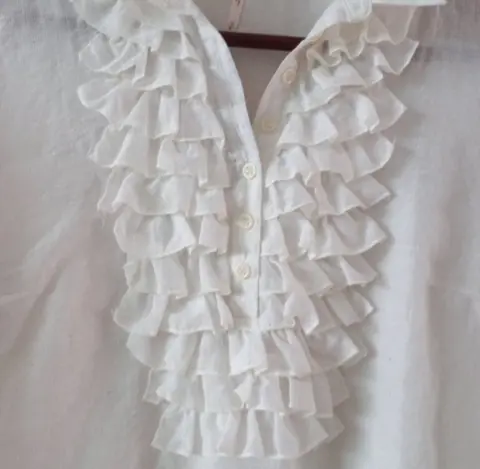 Elegante blusa blanca. Hermosos detalles al frente, la tela es ligera y suave, va con todo.