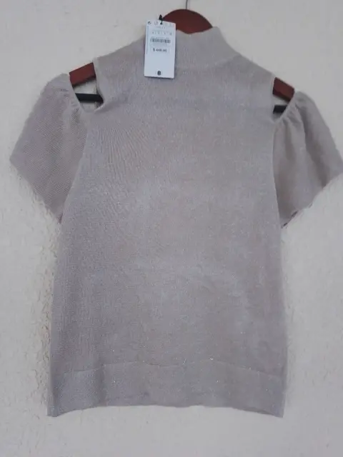Blusa nueva en tono dorado brillosa, hombros descubiertos, manga corta, de cuello, ligera