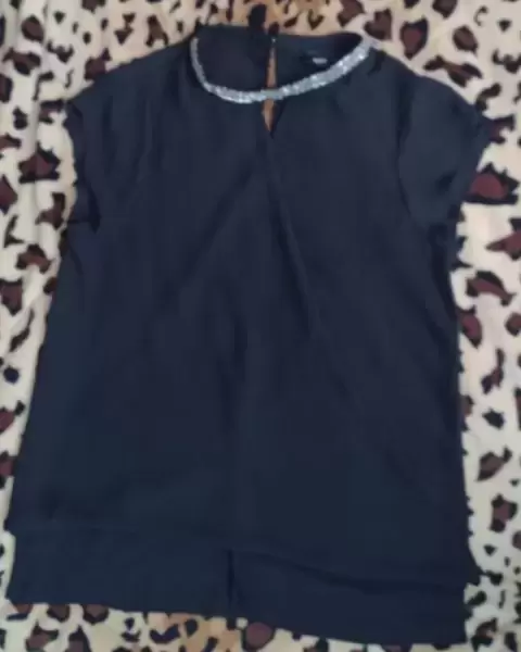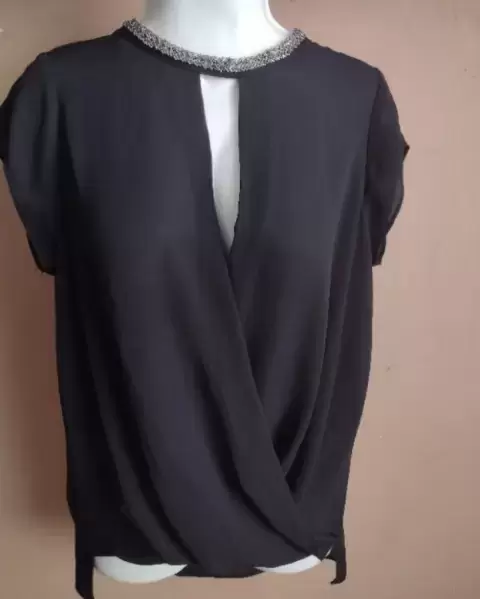 Elegante blusa original 🤩. Elegante blusa tela tipo shifon 🤩cuello bordado con canutillo y chaquira en color plateado , escote en espalda , cruzada al frente talla S