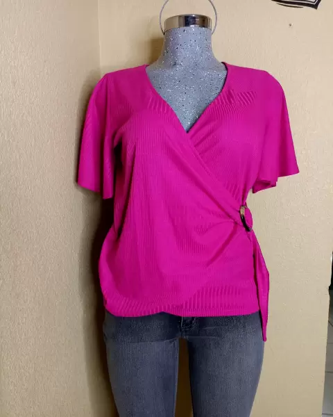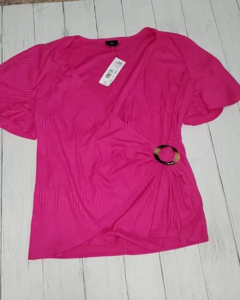 Blusa cruzada al frente, escote en VSimula traer un broche al costadoColor fucsia Marca Worthington - Talla S, podría quedar también a una talla M