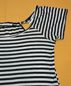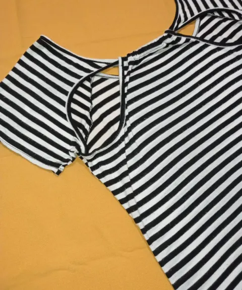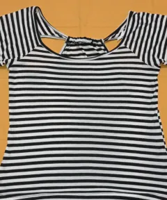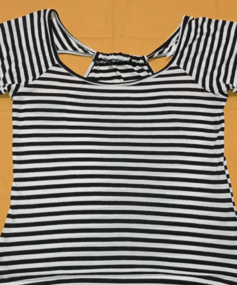 Escote Espalda Rayas. Blusa a rayas en tela fresca con strech,, es usada, no rota, no manchada, algunas bolitas en la tela por las lavadas, pero aun con vida de uso. Busto: 50 cmCintura: 48 cmCadera: 54 cmLargo: 65 cmLa blusa se midió sin estirarla, aun da de 5 a 10 cm el strech. Lleva de regalito unos aretes dormilona de plata Ley 925.