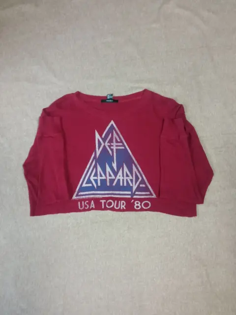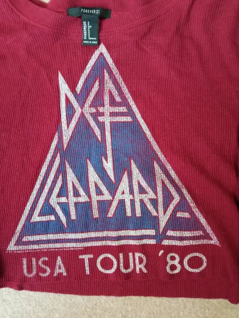 Forever 21 crop top Def Leppard color vino.. Forever 21 crop top estampado del Usa world tour 80' de la banda de rock Def LeppardColor vino en talla Small, en muy buen condición muy poco uso, sin desgaste, ni detalles.Medidas: 39 cm de largo, 120 cm ancho de axila a axila, 104 cm de ancho en abdomen, 47 cm de largo en mangas.Materiales: 61% algodón y 39% poliéster.