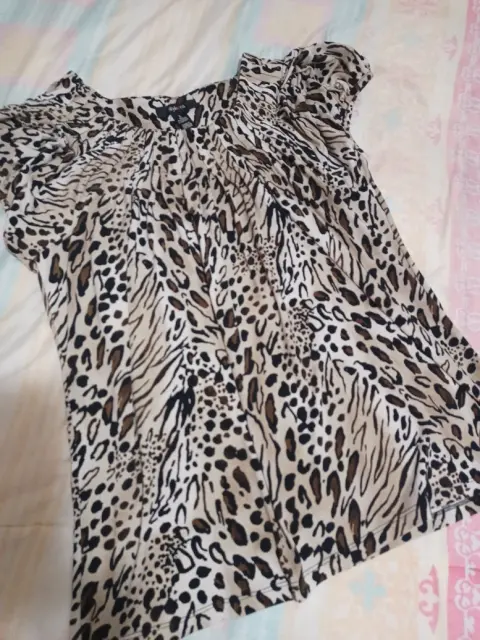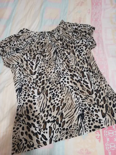 Linda blusa estampada de animal print, textura fresca, que queda muy bien al cuerpo. Talla L/G
