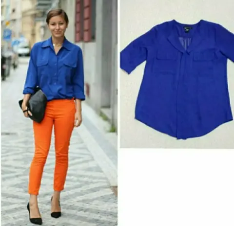 Hermosa blusa azul real. Bonita blusa color azul real, cuello V, manga 3/4 muy fresca, la tela es traslúcida