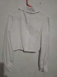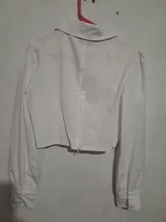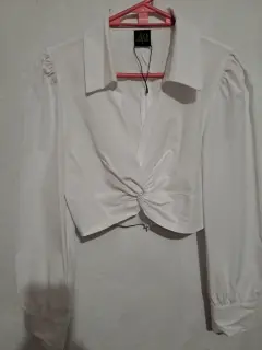 Blusa blanca corta talla 7, marca Jlo, en buenas condiciones, esperando una segunda oportunidad, manga larga y adorno en la cintura.