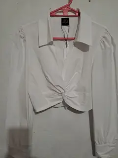Hermosa blusa blanca para Dama. Blusa blanca corta talla 7, marca Jlo, en buenas condiciones, esperando una segunda oportunidad, manga larga y adorno en la cintura.