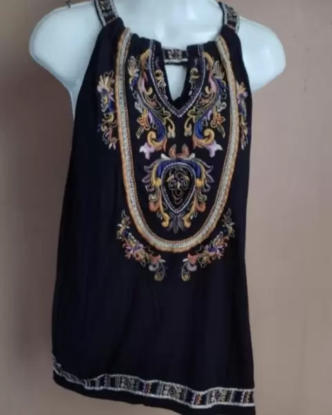 Hermosa blusa marca americana 🤩 la composición de la tela en etiqueta , en color negro con hermoso bordado al frente , en hilo y chaquira , perfecto estado 👌
