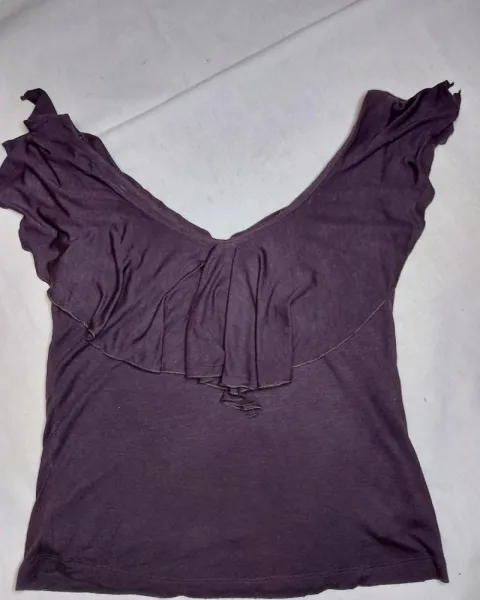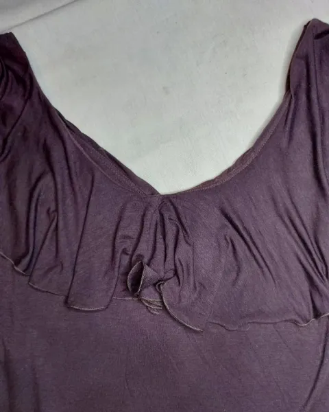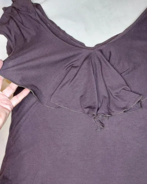 Linda blusa forrada color café con olanes en la parte de enfrente y atrás, muy cómoda, fresca, viste muy bien!