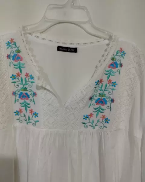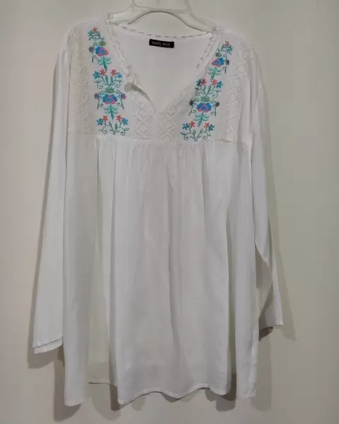 Hermosa blusa campesina bordada. Hermosa blusa campesina bordada (flores) con detalles de tejido, suelta, fresca y ligera