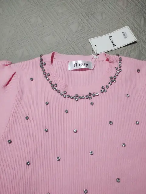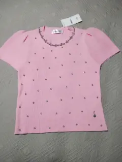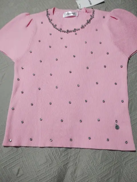 Hermosa blusa con estoperoles. Linda blusa tipo tenida muy cómoda la tela es ligera los estoperoles se ven muy lindos queda A una talla chica maxima 34