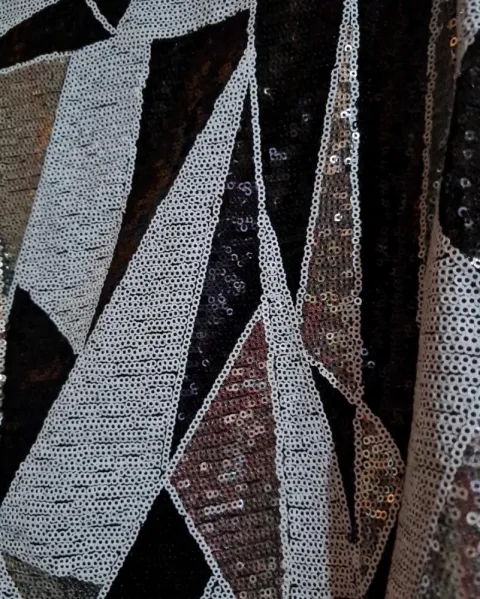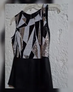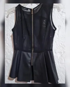 Linda blusa lentejuelas, con olan de piel en parte baja ,cierre parte trasera mediante cierre