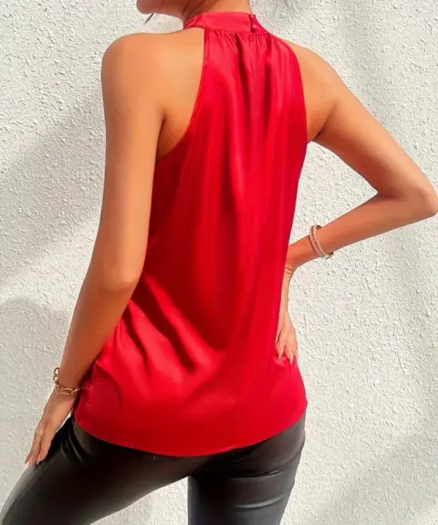 Hermosa blusa nueva cuello halter color rojo talla M tela satinada ideal tanto para un look casual como formal