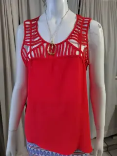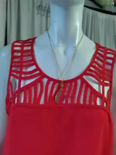 Blusa en color coral, tela fresca de temporada, talla mediana, hermoso detalle a la altura del busto