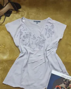 HERMOSA BLUSA COLOR LILA CON ENCAJE DE FIGURAS AL FRENTE Y SUPER LIGERA▫️Marca: LOVE STITCH▫️ TALLA: L