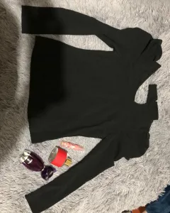 Hermosa blusa negra Shein. Talla grande, color negro con diseño de abertura y boton negro en la parte trasera,super combinable.