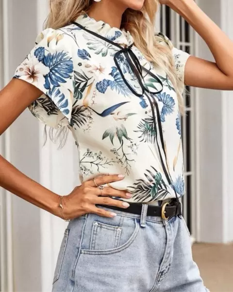 Hermosa y delicada blusa talla L,manga corta, especial para esta temporada de calor
