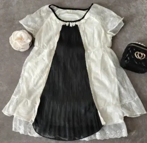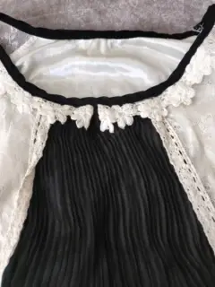 ⚜️ Blusa tipo camizón, con capa de tela tipo gasa y encaje, con detalles en el cuello, manga tipo casco en talla mediana/chica (busto no muy grande).⚜️Bastante fresca, ideal para un estilo romántico o coreano.⚜️No incluye accesorios