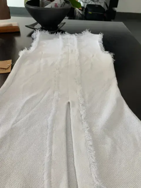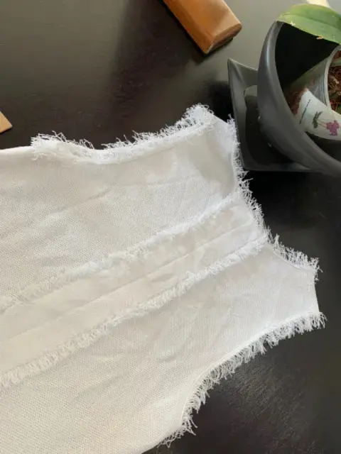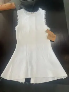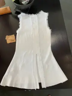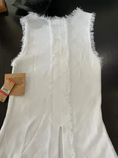 Bonita y elegante blusa sin mangas. Lista para usarse m. Nueva. Con detalles de deshilados en las mangas y la parte de la cintura.