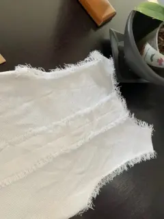 Hermosa y fina blusa blanca. Bonita y elegante blusa sin mangas. Lista para usarse m. Nueva. Con detalles de deshilados en las mangas y la parte de la cintura.