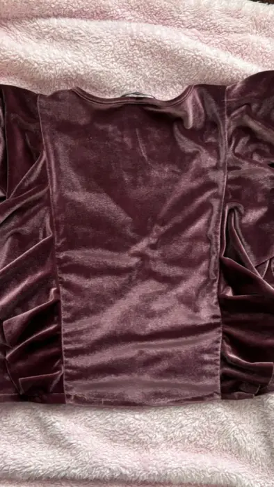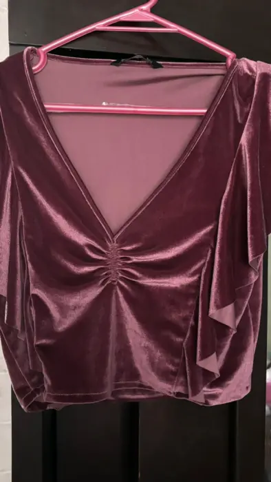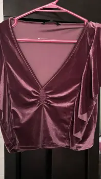 Un hermoso Crop top morado con mangas olgadas talla L, color morado, no tiene ningún detalle solo se usó una vez