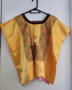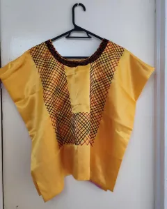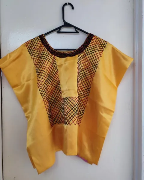 Huipil bordado de cadenilla 💛. Hermoso huipil bordado de cadenilla, originario de Oaxaca, color amarillo, tela satinada. En la segunda foto se puede ver el color al sol. Está abierto para que lo cierres a tu medida y forma. 63 cm de ancho, 56 cm de largo
