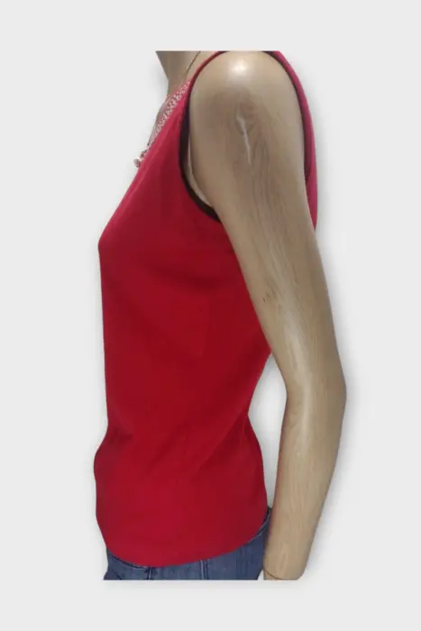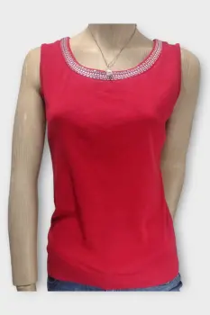 Karen Scott Blusa Dama 100% Algodón Rojo SBlusa casual marca Karen Scott 100% AlgodónMarca: Karen ScottOrigen: VietnamMaterial: 100% AlgodónTalla: SEstilo: CasualPatrón: CAsualColor: RojoCierre: AbiertoPecho: 45 cmLargo: 54 cmHombro: 36 cmManga: Sin MangaRopa de USO en muy buen estado