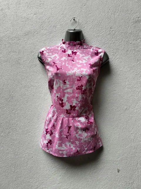 LINDA BLUSA. Linda blusa manga Corta súper elegante, con cuello algo y efecto plisado en el cuello botón trasero atrás del cuello, no estir