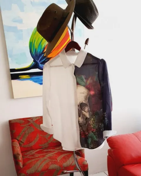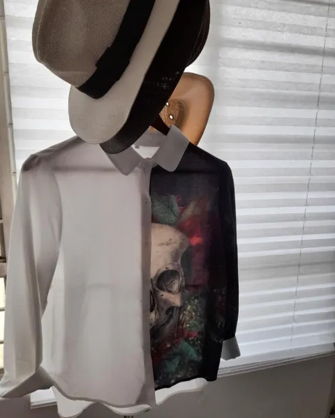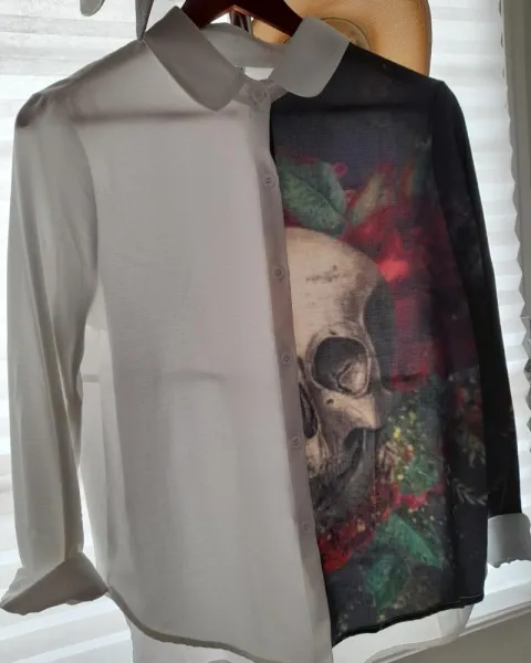 Linda blusa manga larga de calavera, úsala formal o casual marcada como #M pero viene mas amplia queda bien a una #L