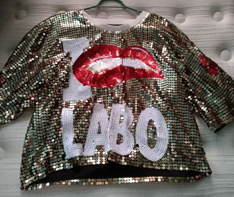 Linda blusa de lentejuelas 💕. Blusa de lentejuelas dorada con estampado de labiosTalla SEstado de la prenda Nuevo sin etiqueta