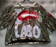 Blusa de lentejuelas dorada con estampado de labiosTalla SEstado de la prenda Nuevo sin etiqueta