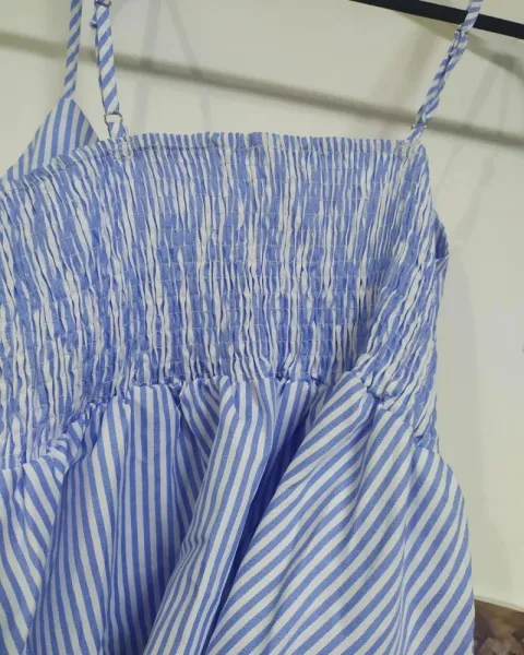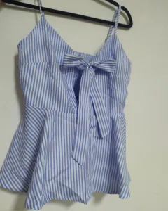 Divina blusa de rayas blancas y azules Súper fresca Queda desde M hasta XL (sí no eres copa DD) La vendo por que no me quedó