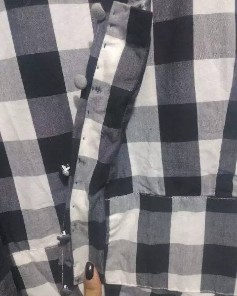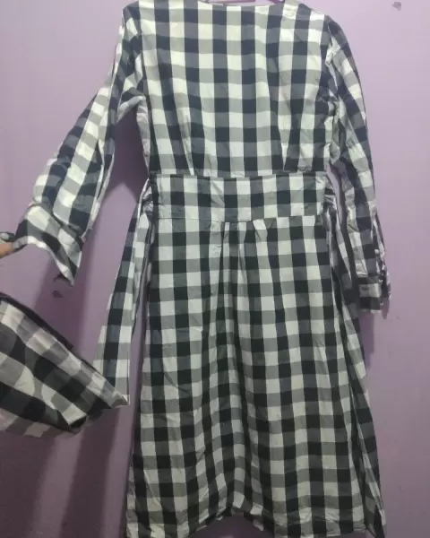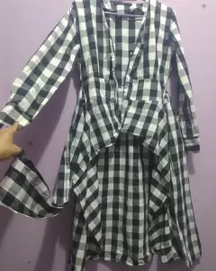 Maxiblusa manga larga blanco con negro. Cinturon a la cintura. Único detalle en los botones de enfrente tal y como se muestra en foto