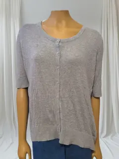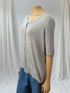 Merona Blusa Casual.. Merona Blusa Casual, talla XL, color gris, cuello redondo con botones al frente, manga 3/4, semielastico en cintura y mangas, corte recto, hecho de algodón y modal, mide 42cm de hombro a hombro 46cm de axila a axila, 44cm de cintura con 58cm de largo del hombro hacia abajo en buen estado cosmetico.