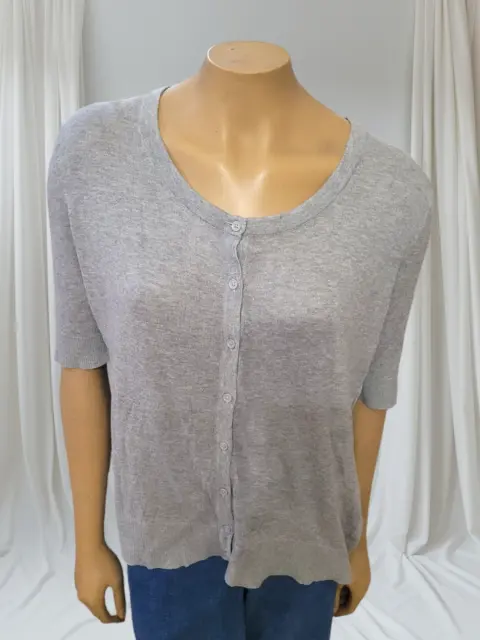 Merona Blusa Casual, talla XL, color gris, cuello redondo con botones al frente, manga 3/4, semielastico en cintura y mangas, corte recto, hecho de algodón y modal, mide 42cm de hombro a hombro 46cm de axila a axila, 44cm de cintura con 58cm de largo del hombro hacia abajo en buen estado cosmetico.