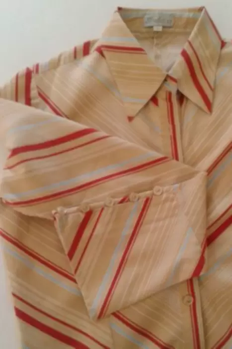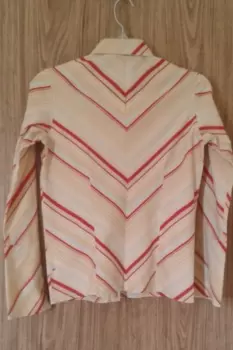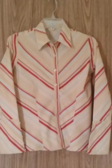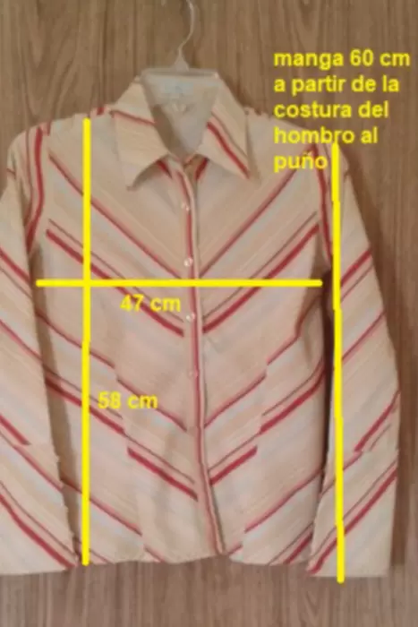 Moderna Blusa fresca ya que es 97% Algodòn y 3% Elastano.La forma de las rayas te hacen una linda silueta, sus mangas son especiales su hechura es moderna.Talla 2 (mediana)Te fascinarà, esta en muy buen estado :)