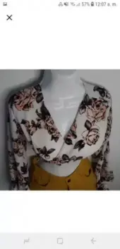 Moderna Blusa flores. Es muy atractiva y super moderna. Manga larga con listones en el puño. Tiene resorte parte de atras. Talla S a M.