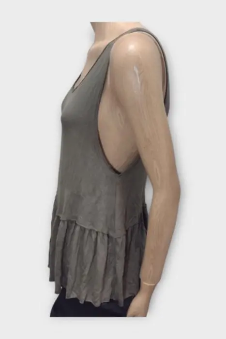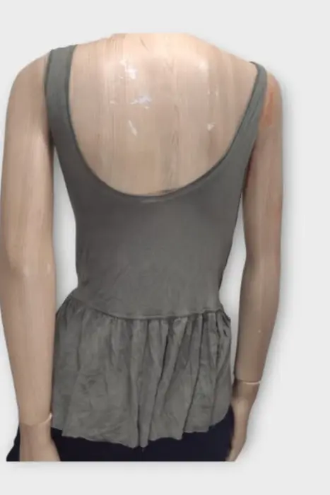 MOSSIMO Blouson Peplum Dama Rayón Verde M. MOSSIMO Blouson Peplum Dama Rayón Verde MMarca: MOSSIMO SUPPLY CO.Origen: ChinaMaterial: 95% Rayón 5% SpandexTalla: MEstilo: BlousonPatrón: PeplumColor: Verde Oliva Cierre: ElásticoPecho: 43 cmLargo: 61 cmHombro: 38 cmManga: Sin MangasRopa de USO en muy buen estado
