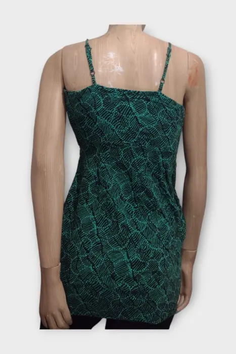 MOSSIMO Blusa Tirantes Polyester Verde XS 2. MOSSIMO Blusa Tirantes Dama Polyester Verde XS 2Marca: MOSSIMOOrigen: ChinaMaterial: PolyesterTalla: XS 2Estilo: BlusaPatrón: Blusa de TirantesColor: Verde Cierre: CremalleraPecho: 36 cmLargo: 61 cm Hombro: No AplicaManga: Sin MangasRopa de USO en muy buen estadoModelo Único Lo que ves es lo que comprasAclara todas tus dudas antes de comprar