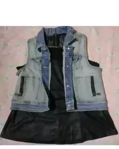 El Dúo contiene un chaleco muy padre de mezclilla y una blusa color negro muy linda, puesto se ve muy bien