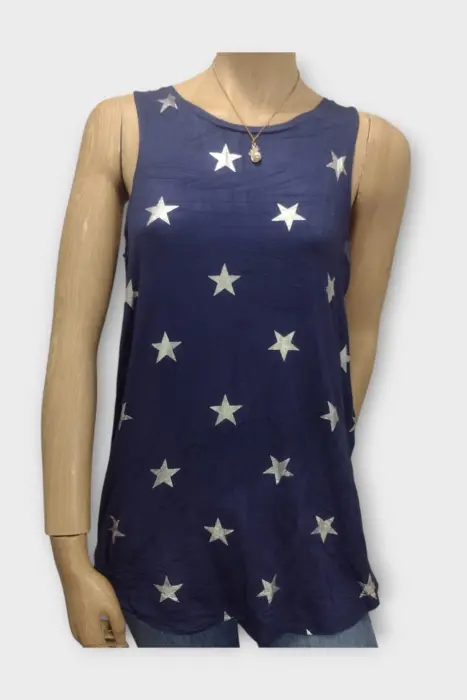 Old Navy Blusa Tirantes Dama Rayón Azul Marino MBlusa marca Old Navy Azul Marino y estrellas 95% Rayón 5% SpandexMarca: Old NavyOrigen: HaitiMaterial: 95% Rayón 5% SpandexTalla: MEstilo: CasualPatrón: CasualColor: Azul MarinoCierre: AbiertoPecho: 47 cmLargo: 64 cmHombro: 30 cmManga: Sin MangasRopa de USO en muy buen estado