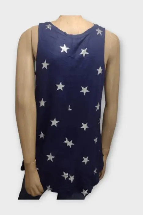Old Navy Blusa Tirantes Dama Rayón Azul Marino MBlusa marca Old Navy Azul Marino y estrellas 95% Rayón 5% SpandexMarca: Old NavyOrigen: HaitiMaterial: 95% Rayón 5% SpandexTalla: MEstilo: CasualPatrón: CasualColor: Azul MarinoCierre: AbiertoPecho: 47 cmLargo: 64 cmHombro: 30 cmManga: Sin MangasRopa de USO en muy buen estado
