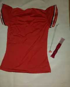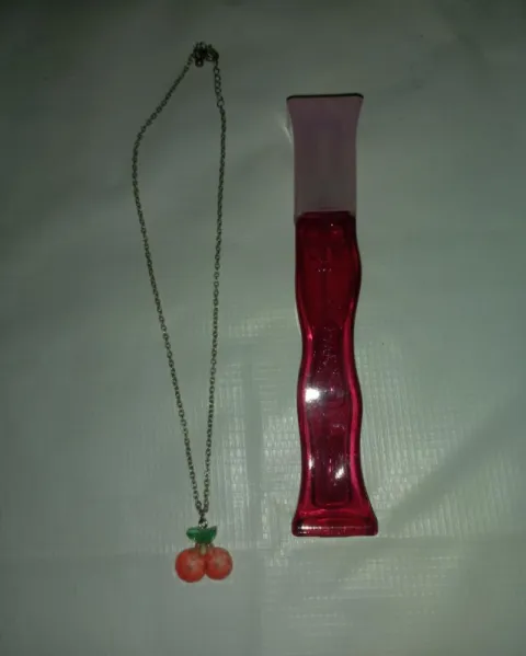 Pack Blusa roja, perfume y collar. Hermosa blusa color roja con varios detalles que la hacen unica de la marca adore talla s, sin ningun detalle, de hombro a hombro:35 cm aprox. Largo: 53 cm aprox. Se estira un poco, tambien incluyo un perfume dela marca fraiche con poco uso pero si esta algo raspado el envase, el collar son 2 cerezas unidas.