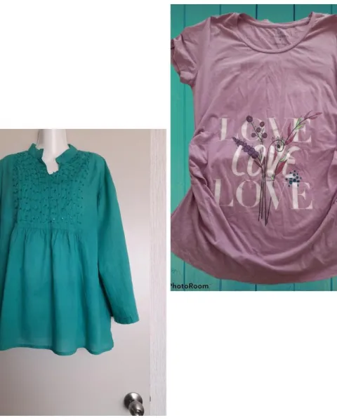 Blusas de maternidad, morada talla G weekend, verde talla M, en perfecto estado.