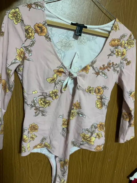 Pantiblusa Forever 21 color rosa con diseños de flores, talla chica, manga 3/4, escote V