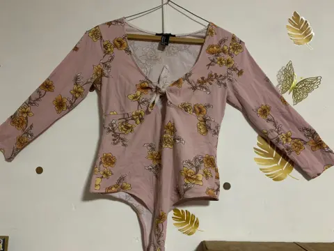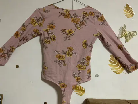 Pantiblusa Forever 21. Pantiblusa Forever 21 color rosa con diseños de flores, talla chica, manga 3/4, escote V